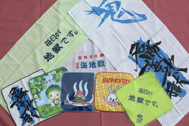 地獄めぐり内のSHOPでは、地獄オリジナルのものや別府温泉にちなんだタオルも販売されていますので、ご自身用はもちろん、お土産にも喜ばれます。